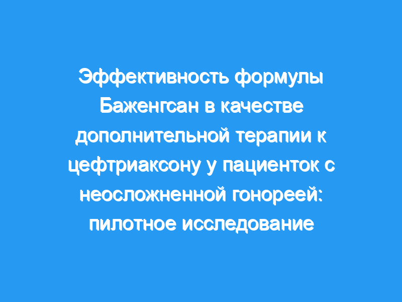 Целью этого пилотного исследования было изучение возможной эффективности и безопасности формулы Баженгсан (BZSF) в качестве дополнительной терапии к цефтриаксону у пациенток с неосложненной гонореей.