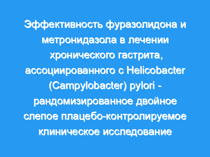 Семьдесят два пациента с хроническим гастритом, ассоциированным с Helicobacter pylori, были рандомизированы на 3-недельное пероральное лечение фуразолидоном 0,1 г внутривенно