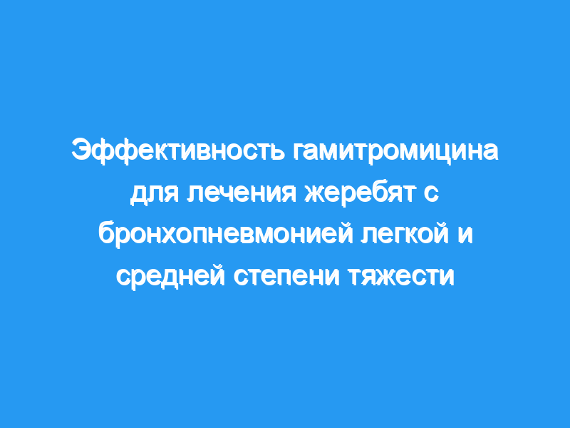 Гамитромицин активен in vitro в отношении бактериальных агентов, наиболее часто ассоциируемых с бронхопневмонией у пожилых жеребят. Однако клиническая эффективность и безопасность этого препарата не были исследованы. Гипотеза: Гамитромицин эффективен для лечения бронхопневмонии у жеребят. Животные: Сто двадцать один жеребенок на ферме, эндемичной по инфекциям, вызванным Rhodococcus equi.