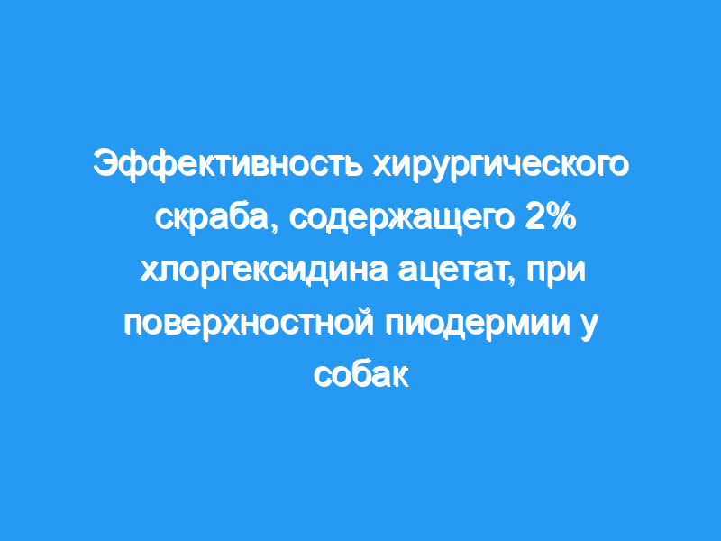 Клиническая эффективность хирургического скраба, содержащего 2% хлоргексидина ацетат (2CA, Nolvasan® Surgical Scrub, Fort Dodge Animal Health, США), была оценена для местного лечения поверхностной пиодермии у собак.