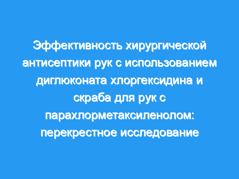 Диглюконат хлоргексидина 4% и PCMX 3% обладали аналогичной бактерицидной эффективностью, но они не соответствовали стандарту эффективности EN 12791. При подготовке к операции особое внимание должно уделяться антисептике ногтей.Судебное разбирательство было зарегистрировано по адресу ClinicalTrials.gov (ИДЕНТИФИКАТОР: NCT02500758).