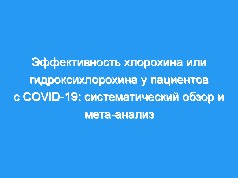 Клинические исследования хлорохина (CQ) и гидроксихлорохина (HCQ) при заболевании COVID-19 показали противоречивые результаты. Мы стремились систематически оценивать влияние CQ и HCQ с азитромицином или без него на исходы пациентов с COVID-19.