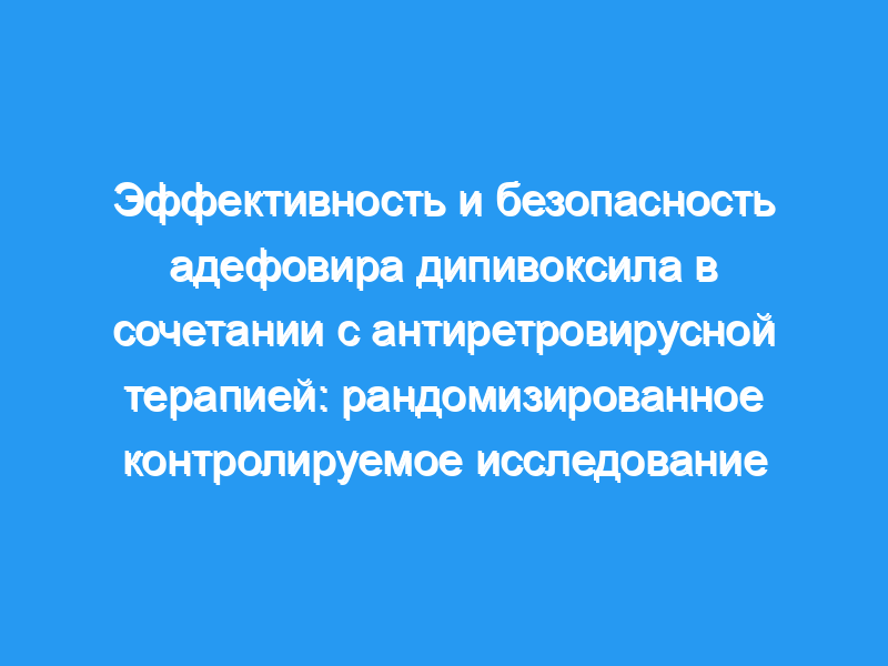 Тридцать три центра лечения ВИЧ в США. Участники: Из 1171 обследованного пациента были рандомизированы 442 пациента, инфицированных ВИЧ, получавших стабильную антиретровирусную терапию в течение не менее 8 недель с РНК ВИЧ в плазме крови более 2500 копий/мл и количеством CD4+ клеток выше 0,20 × 10(9)/л. Вмешательство: Пациенты были рандомизированы для получения либо однократной дозы адефовира дипивоксила в дозе 120 мг/сут (n = 219), либо неотличимого плацебо (n = 223). Все пациенты получали L-карнитин в дозе 500 мг/сут. Адефовир с открытой этикеткой был предложен через 24 недели и продолжался до конца исследования. Основные показатели результатов: Изменения РНК ВИЧ по сравнению с исходным уровнем, основанные на площади под кривой и уровнях CD4+ клеток, побочных эффектах и влиянии базовой генотипической резистентности на реакцию на адефовир.