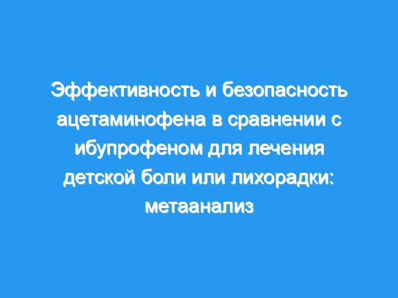Обобщить результаты исследований, проверяющих эффективность и безопасность однократных доз ацетаминофена и ибупрофена для лечения боли или лихорадки у детей. Источники данных: Отчеты были собраны путем поиска в компьютерных базах данных (с момента их создания до мая 2002 года) и реестрах, соответствующих журналах и библиографиях ключевых статей. Выбор исследования: Семнадцать слепых рандомизированных контролируемых исследований с участием детей (старше 18 лет), получавших либо препарат для лечения лихорадки, либо умеренную или сильную боль. Извлечение данных: В рамках модели с фиксированным эффектом показателями результата для начальной однократной дозы ибупрофена по сравнению с ацетаминофеном были соотношение рисков для достижения более 50% максимального облегчения боли, величина эффекта для снижения лихорадочной температуры и соотношение рисков для незначительного и серьезного вреда. Обобщение данных: Ибупрофен (4-10 мг/кг) и ацетаминофен (7-15 мг/кг) показали сопоставимую эффективность (3 испытания по облегчению боли, 186 детей). Балльные оценки отношения рисков составили 1,14 (95% доверительный интервал [ДИ] 0,82-1,58) через 2 часа после приема дозы и 1,11 (95% ДИ 0,89-1,38) через 4 часа. Ибупрофен (5-10 мг/кг) снижал температуру больше, чем ацетаминофен (10-15 мг/кг) через 2, 4 и 6 часов после лечения (соответствующие значения взвешенного эффекта: 0,19 [95% ДИ, 0.05-0.33], 0.31 [95% ДИ, 0,19-0,44] и 0,33 [95% ДИ 0,19-0,47]) (9 исследований с лихорадкой, 1078 детей). Для ибупрофена 10 мг/кг (ацетаминофен, 10-15 мг/кг) соответствующие величины эффекта составили 0,34 (95% ДИ, 0.12-0.56), 0.81 (95% ДИ 0,56-1,03) и 0,66 (95% ДИ 0,44-0,87). Не было никаких доказательств того, что препараты отличались друг от друга (или от плацебо) по частоте незначительного или серьезного вреда (17 испытаний безопасности, 1820 детей).