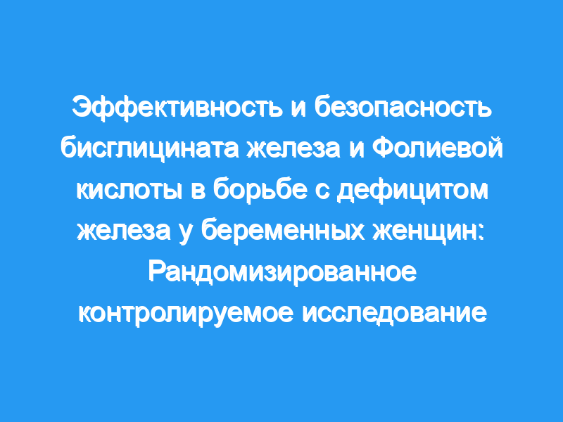 Целью этого рандомизированного контролируемого исследования было изучение биодоступности, эффективности и безопасности перорального приема бисглицината железа плюс добавки фолиевой кислоты у беременных женщин с дефицитом железа.