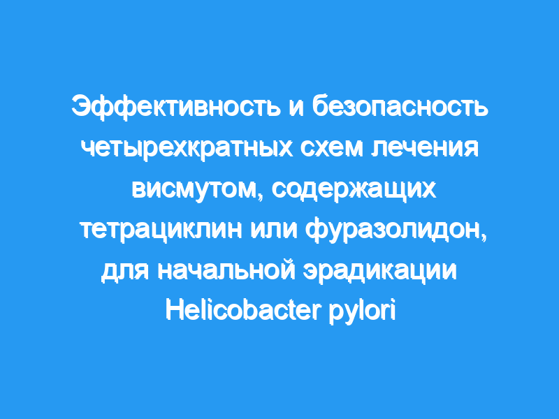 Инфекция Helicobacter pylori (H. pylori) может вызвать хронический гастрит, язвенную болезнь и даже рак желудка, поэтому эффективная эрадикация имеет решающее значение.В этом исследовании сравнивалась эффективность и безопасность четырехкратных схем лечения висмутом, включающих тетрациклин или фуразолидон для начальной эрадикации.Пациенты, у которых впервые была диагностирована инфекция H. pylori в период с января 2020 по январь 2021 года, были рандомизированы для получения либо режима, содержащего тетрациклин (n = 116), либо режима, содержащего фуразолидон (n = 168). Обе схемы включали 1 ингибитор протонной помпы (рабепразол 20 мг, или эзомепразол 20 мг, или эпразол 5 мг), коллоидный пектин висмут 300 мг и амоксициллин 1000 мг в дополнение к тетрациклину 1,0 г или фуразолидону 0,1.