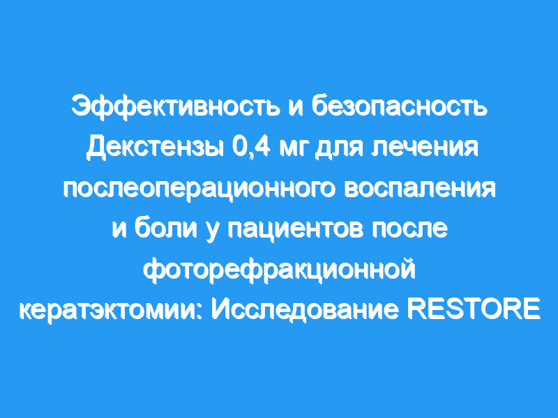 Определить предпочтения пациента и результаты лечения с помощью интраканаликулярной вставки дексаметазона в дозе 0,4 мг по сравнению со стандартным режимом введения стероидов в контралатеральный глаз после двусторонней фоторефракционной кератэктомии (ФРК).