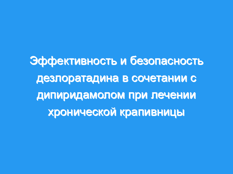 Наше исследование было проведено для оценки клинической эффективности и безопасности дезлоратадина в сочетании с дипиридамолом, который является ингибитором адгезии тромбоцитов при лечении ХУ. Рандомизированное исследование было проведено с участием 64 пациентов с аутоиммунным CU с положительным кожным тестом на аутологичную плазму (APST): 34 пациента в качестве лечения и 30 в качестве контроля.