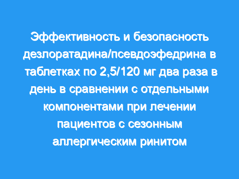 В этом многоцентровом рандомизированном двойном слепом исследовании с тремя группами приняли участие 650 пациентов с САР. В течение 2 недель пациентам вводили комбинированную таблетку дезлоратадина плюс псевдоэфедрин (дезлоратадин/псевдоэфедрин, 2,5/120 мг) два раза в день (внутривенно), дезлоратадин (5 мг) один раз в день или псевдоэфедрин (120 мг) внутривенно.