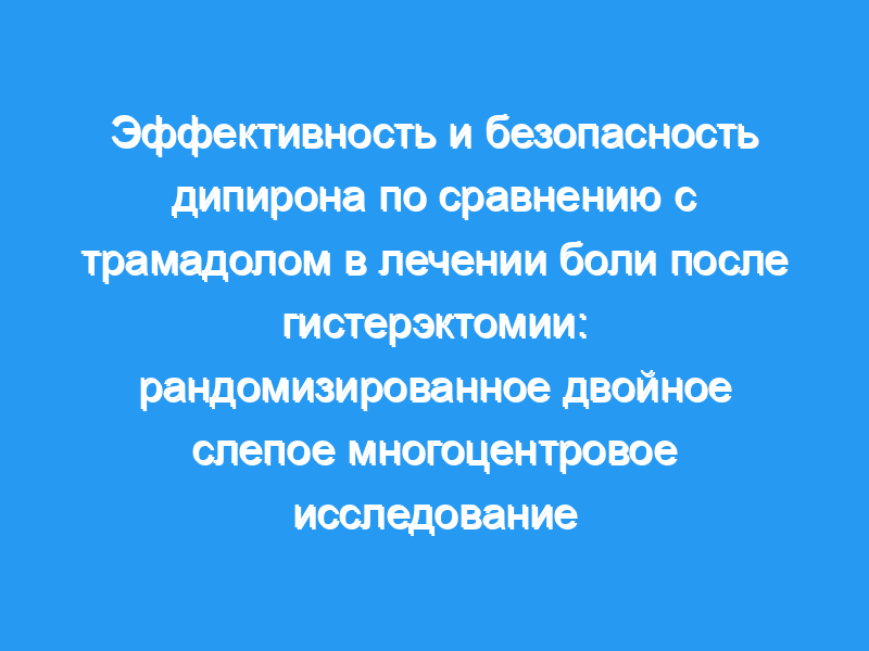 Предпосылки и цели: Мы оценили эффективность и безопасность дипирона по сравнению с трамадолом в облегчении ранних послеоперационных болей после абдоминальной гистерэктомии.