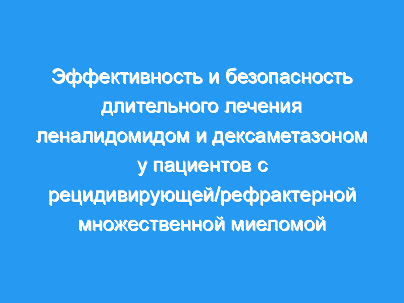 Данные двух рандомизированных основных исследований фазы 3, оценивающих комбинацию леналидомида и дексаметазона при рецидивирующей/рефрактерной множественной миеломе (RRMM), были объединены, чтобы охарактеризовать подгруппу пациентов, которые достигли долгосрочного эффекта от терапии (выживаемость без прогрессирования ≥ 3 лет). Пациенты с долгосрочным эффектом от терапии (n = 45) имели среднюю продолжительность лечения 48,1 месяца и частоту ответа 100%. Гуморальное улучшение (невключенный иммуноглобулин А) чаще наблюдалось у пациентов с длительной пользой от терапии (79% против 55%, Р = 0,002). Значимыми предикторами долгосрочной пользы терапии в многофакторном анализе были возраст <, 65 лет (Р = 0,03), β2-микроглобулин <, 2,5 мг/л (Р = 0,002) и меньшее количество предшествующих терапий (Р = 0,002). Скорректированный на экспозицию показатель заболеваемости (EAIR) нейтропенией 3-4 степени был ниже у пациентов с долгосрочной пользой от терапии (13,9 против 38,2 на 100 пациенто-лет). EAIR для инвазивного вторичного первичного злокачественного новообразования был одинаковым у пациентов с долгосрочной пользой от терапии и у других пациентов (1,7 на 100 пациенто-лет). Эти данные указывают на то, что пациенты с RRMM могут испытывать долгосрочную пользу от лечения леналидомидом и дексаметазоном с управляемыми побочными эффектами.
