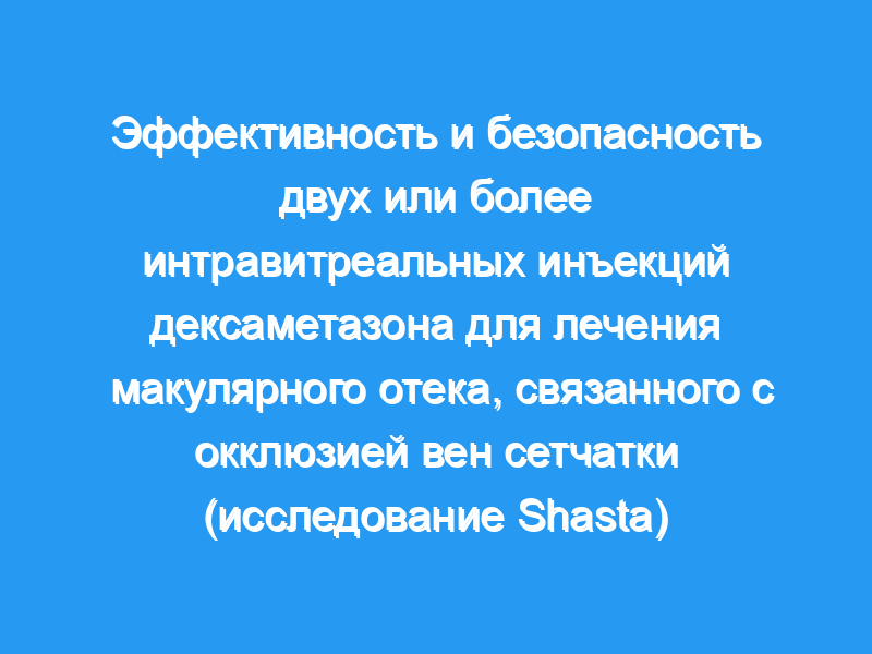 Пациенты (n = 289) получали от 2 до 9 (в среднем 3,2) имплантатов DEX в качестве монотерапии (29,1% пациентов) или с дополнительным лечением/процедурами. Средняя продолжительность макулярного отека до первой имплантации DEX составила 18,4 месяца. Средний интервал между повторными инъекциями составил 5,6 месяца. Среднее пиковое изменение остроты зрения с наилучшей коррекцией от исходного уровня через 4 недели до 20 недель после окончательной имплантации DEX составило +1,0 линии (P <, 0,001). Острота зрения с наилучшей коррекцией и толщина центральной сетчатки значительно улучшились по сравнению с исходным уровнем после каждой из первых 6 инъекций имплантата DEX (P ≤ 0,037), 59,7% пациентов с окклюзией ветвей вен сетчатки и 66,7% пациентов с окклюзией центральной вены сетчатки достигли улучшения остроты зрения с наилучшей коррекцией в 2 раза. Повышение внутриглазного давления (≥ 10 мм рт. ст.) произошло у 32,6% пациентов, 29,1% использовали препараты, снижающие внутриглазное давление, для лечения повышения, связанного с имплантацией DEX. Только 1,7% пациентов нуждались в хирургическом вмешательстве при послеоперационной глаукоме.