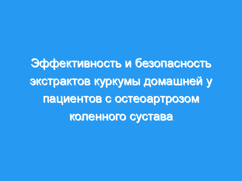 Целью этого исследования было определить эффективность и безопасность экстрактов куркумы домашней в уменьшении боли и улучшении функций у пациентов с остеоартритом коленного сустава. Дизайн и условия исследования: Дизайн и условия были рандомизированным контролируемым исследованием в университетской больнице в Бангкоке, Таиланд.