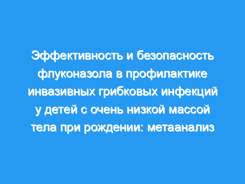 Оценить эффективность и безопасность флуконазола в профилактике инвазивной грибковой инфекции у детей с очень низкой массой тела при рождении (VLBW).