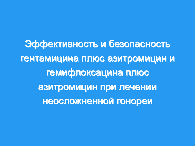 Микробиологическое излечение было достигнуто на 100% (нижняя граница 1-стороннего точного 95% доверительного интервала [ДИ], 98,5%) из 202 оцениваемых участников, получавших гентамицин/азитромицин, и на 99,5% (нижняя граница 1-стороннего точного 95% ДИ, 97,6%) из 199 оцениваемые участники, получающие гемифлоксацин/азитромицин. Гентамицин/азитромицин излечили 10 из 10 инфекций глотки и 1 из 1 ректальной инфекции, гемифлоксацин/азитромицин излечили 15 из 15 инфекций глотки и 5 из 5 ректальных инфекций. Побочные эффекты со стороны желудочно-кишечного тракта были частыми в обеих группах.