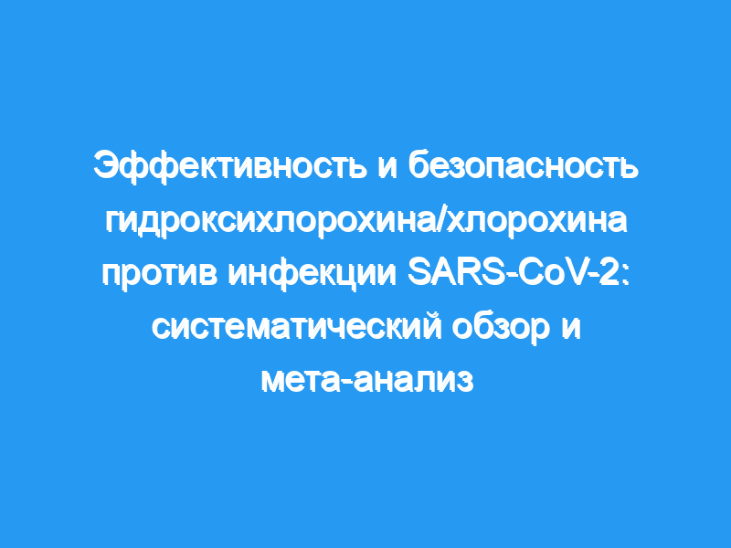 Мы искали в Embase, PubMed, Web of Science и Cochrane central рандомизированные контролируемые исследования (РКИ) и проспективные когортные исследования, опубликованные до 15 октября 2020 года и оценивающие эффективность только HCQ против инфекции SARS-CoV-2. Мы включили исследования, оценивающие только HCQ / CQ в качестве вмешательства и плацебо / стандартное лечение в качестве контрольной группы. Ретроспективные исследования и исследования с использованием других препаратов (а именно азитромицина, кортикостероидов, иммуномодуляторов и т.д.) мы исключили. В этот обзор были включены тринадцать РКИ и три проспективных когортных исследования. Мы объединили данные, используя модель случайных эффектов.