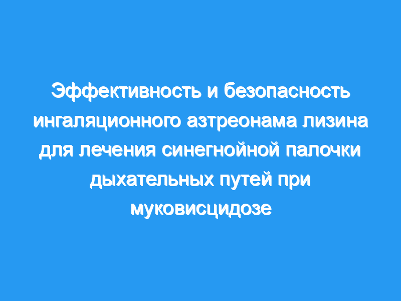 Мы оценили краткосрочную эффективность и безопасность азтреонама лизина для ингаляций (АЗЛИ [аэрозольный монобактамный антибиотик]) у пациентов с муковисцидозом (МВ) и синегнойной палочкой (ПА) инфекции дыхательных путей.