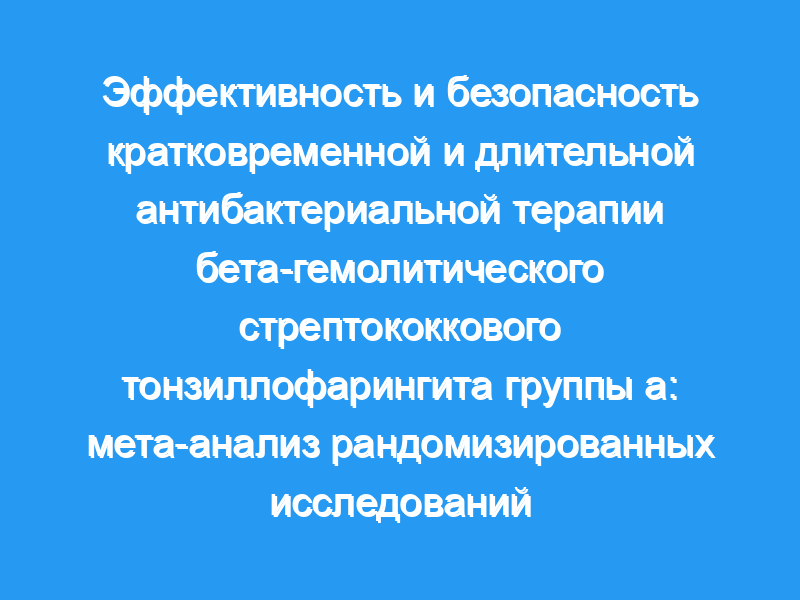 Одиннадцать РКИ сравнивали короткий курс лечения с длительным курсом (5 с пенициллином V, 4 с пероральными цефалоспоринами, 1 с внутримышечным введением цефтриаксона и 1 с клиндамицином, 6 из 11 были с открытой этикеткой) были включены. В первичном анализе показатели микробиологической эрадикации ГАЗОВ были ниже при лечении коротким курсом по сравнению с длительным курсом (8 РКИ, 1607 пациентов, отношение шансов [OR] 0,49, 95% доверительный интервал [ДИ] 0,32-0,74). Эта связь была отмечена при лечении пенициллином V (3 РКИ, 500 пациентов, ИЛИ 0,36, 95% ДИ 0,13-0,99), но не была значимой при лечении цефалоспорином (4 РКИ, 1018 пациентов, ИЛИ 0,62, 95% ДИ 0,38-1,03). Микробиологическая эрадикация была менее вероятна при коротком курсовом лечении в исследованиях, в которых участвовали преимущественно дети и подростки (в возрасте до 18 лет) (6 РКИ, 1258 пациентов, ОР 0,63, 95% ДИ 0,40-0,98). Клинический успех был ниже у пациентов, получавших лечение коротким курсом (5 РКИ, 1217 пациентов, ОР 0,49, 95% ДИ 0,25-0,96). Нежелательные явления не различались между сравниваемыми группами. Вышеуказанные ассоциации были подтверждены в анализах, включавших все включенные РКИ.