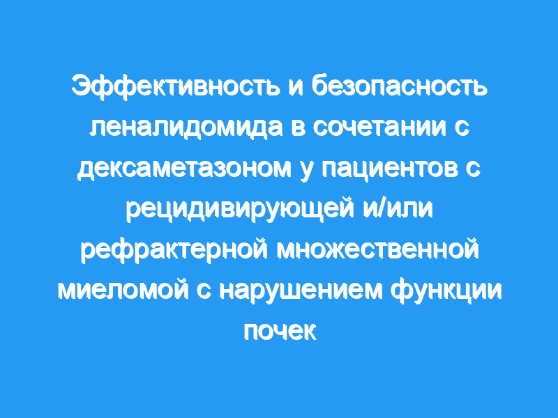 Результаты этого исследования показали, что при тщательном мониторинге уровня CLcr и нежелательных явлений, а также соответствующей коррекции дозы леналидомид плюс дексаметазон являются эффективным и хорошо переносимым вариантом лечения для пациентов с множественной миеломой, у которых есть RI.