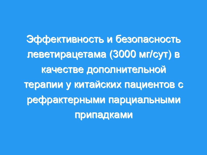 Оценить эффективность и безопасность приема 3000 мг леветирацетама в день (LEV, Keppra) в качестве дополнительной терапии для китайских пациентов с рефрактерными парциальными припадками.