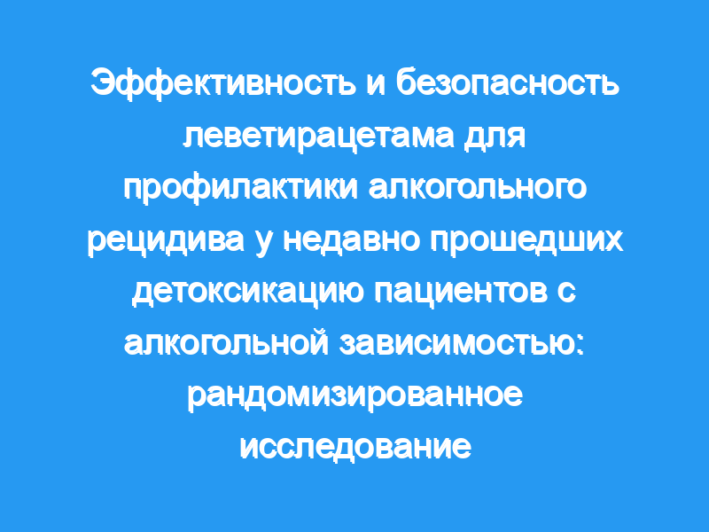 Было показано, что противоэпилептические средства снижают потребление алкоголя или предотвращают рецидивы у пациентов с алкоголизмом. Цель: исследовать, предотвращает ли новый противоэпилептический леветирацетам (ЛЕВ) рецидив после детоксикации по сравнению с плацебо у пациентов с алкогольной зависимостью. Двести один пациент был включен в проспективное рандомизированное двойное слепое многоцентровое плацебо-контролируемое исследование. После детоксикационного лечения и периода скрининга в 7 дней пациенты были рандомизированы для лечения левомицетином или плацебо. Препарат вводили по схеме фиксированных доз в течение 16 недель. Основными параметрами исхода были общая частота и время до рецидива при чрезмерном употреблении алкоголя. Вторичными параметрами результата были время до первого приема, тяга, приверженность, переносимость и данные о безопасности (средний объем эритроцитов, сывороточная аланинаминотрансфераза, сывороточная аспартатаминотрансфераза, γ-глутамилтрансфераза).