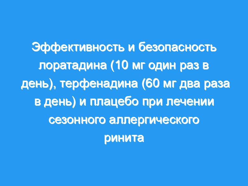 В общей сложности 317 пациентов получали лоратадин по 10 мг один раз в день, терфенадин по 60 мг два раза в день или плацебо в 14-дневном двойном слепом рандомизированном исследовании сезонного аллергического ринита.