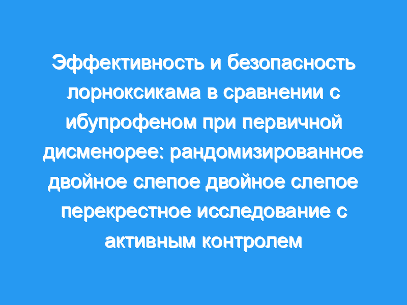 Исследование было запланировано для оценки эффективности и безопасности лорноксикама при умеренных и сильных менструальных болях, вызванных первичной дисменореей. Дизайн исследования: Это двойное слепое, двойное фиктивное, рандомизированное, сопоставимое исследование лорноксикама по сравнению с ибупрофеном было проведено в больнице общего профиля имени сэра Тахтсингджи, Бхавнагар, Гуджарат, Индия. Всего было проанализировано 57 участников с первичной дисменореей, средний возраст которых ±стандартное отклонение (SD) составил 19,2±2,08 года. Участницы были случайным образом распределены на прием лорноксикама в дозе 8 мг или ибупрофена в дозе 400 мг два раза в день в течение максимум трех дней в течение двух последовательных менструальных периодов. В каждом цикле принимались разные лекарства. Эффективность обезболивания сравнивалась по общей площади под баллом обезболивания до 4 и 8 часов, разнице в интенсивности боли, сумме разности в интенсивности боли до 4 и 8 часов, разнице в пиковой интенсивности боли до 4 и 8 часов, пиковому облегчению боли до 4 и 8 часов, общему потреблению лекарств, спасательным препаратам и глобальной оценке участников. Побочные эффекты были зарегистрированы в обеих группах.