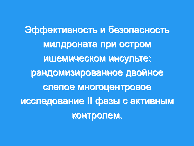 В общей сложности 227 пациентов были рандомизированы для лечения (n = 113, милдронат, n = 114, активный контроль). Через 3 месяца не было выявлено существенной разницы в отношении первичной конечной точки между группами, классифицированными по баллам mRS 0-1 и 0-2 (р = 0,52 и р = 0,07 соответственно). Также не было существенных различий для вторичной конечной точки между группами, классифицированными по баллам NIHSS >,5 и >,8 (p = 0,98 и p = 0,97 соответственно) или баллам BI >,75 и >,95 (p = 0,49 и p = 0,47, соответственно) в течение 15 дней. Частота серьезных нежелательных явлений была одинаковой в обеих группах.