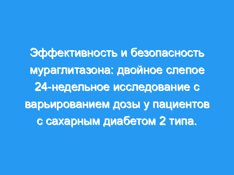 Активация двойного рецептора может улучшить гликемический и липидный профили у пациентов с сахарным диабетом 2 типа.В этом рандомизированном двойном слепом исследовании с участием 1477 пациентов с сахарным диабетом 2 типа, не получавших лекарств, сравнивались эффективность и безопасность мураглитазона (0,5, 1,5, 5, 10 и 20 мг) и пиоглитазона (15 мг). Конечные точки включали изменения в HbA(1C) и липидах плазмы, последнее наблюдение перенесено на 24 неделю.