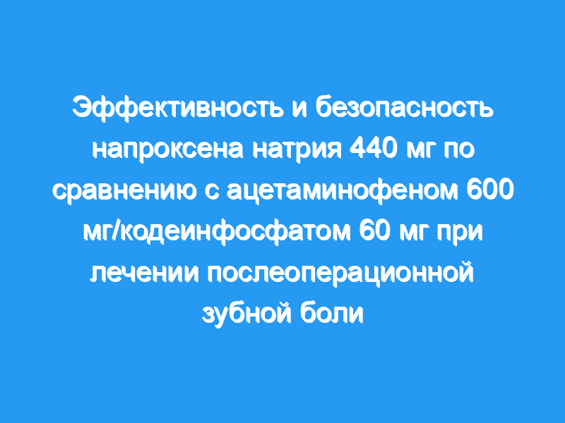 В исследовании 1 было 225 испытуемых, оцененных на предмет эффективности, и 228 испытуемых, оцененных на предмет безопасности. В исследовании 2 было 230 испытуемых, оцененных на предмет эффективности и безопасности. В обоих исследованиях NS и AC были значительно лучше, чем плацебо, почти по всем показателям эффективности. В исследовании 1 NS значительно превосходил AC по всем суммарным показателям эффективности в течение 4 и 8 часов, за исключением SPID4. NS также превосходил AC по большинству индивидуальных показателей времени от 3 до 8 часов, а также по времени до приема спасательных лекарств. Оба активных вещества имели одинаковое начало действия. Частота нежелательных явлений (AEs) была значительно выше в группе AC по сравнению с NS и PBO. Наиболее часто регистрируемыми НЯ с АС были желудочно-кишечные (желудочно-кишечные) и нервные расстройства. В исследовании 2 не было статистически значимых различий между двумя активными методами лечения по какому-либо суммарному показателю эффективности, за исключением TOTPAR8, где NS был значительно лучше, чем AC. NS был значительно лучше, чем AC, по индивидуальным показателям времени снятия боли от 3 до 8 часов и значительно лучше по индивидуальным показателям разницы в интенсивности боли от 5 до 8 часов. У AC было значительно более быстрое начало эффекта по сравнению с NS, но у NS было значительно более длительное время для спасения по сравнению с AC. О СО стороны нервной системы (головокружение и сонливость) сообщалось значительно чаще при АС по сравнению с НС. В заключение следует отметить, что как NS, так и AC эффективны в облегчении послеоперационной зубной боли. NS обеспечивал сравнимую с превосходной разгрузкой по сравнению с AC и его обезболивающий эффект длились значительно дольше. NS хорошо переносился и приводил к более низкой частоте AEs, чем AC. Клиническое значение: В 2017 году Министерство здравоохранения США объявило чрезвычайную ситуацию в области общественного здравоохранения в связи с национальным опиоидным кризисом. Поскольку стоматологи входят в число наиболее распространенных специализированных групп, назначающих опиоиды, эти исследования показывают, что НПВП (такие как напроксен натрия) являются эффективными анальгетиками для облегчения послеоперационной боли.