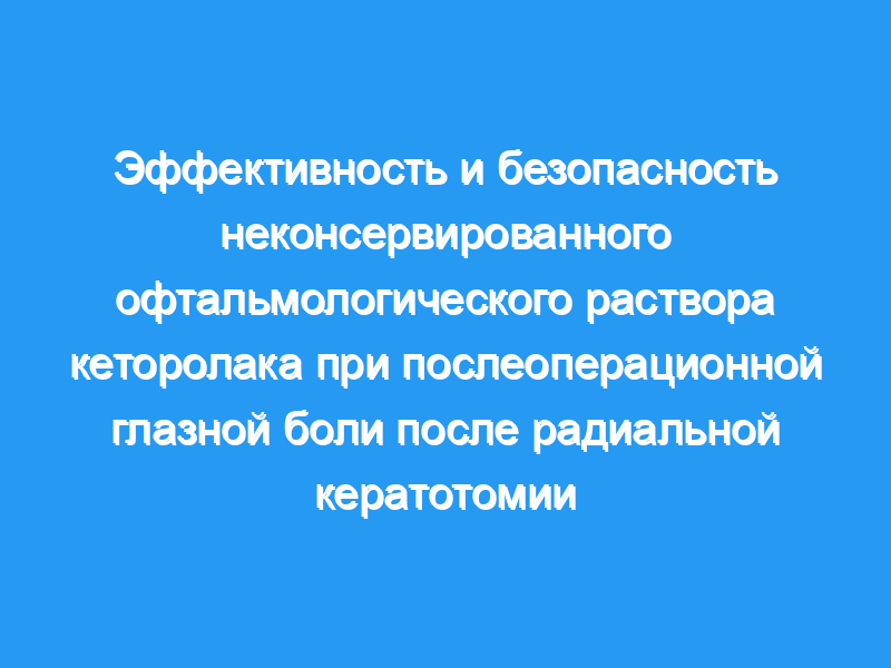Неконсервированный 0,5% офтальмологический раствор кеторолака трометамина был значительно более эффективным и столь же безопасным, как и средство, в облегчении послеоперационной боли, связанной с РК. Это привело к значительному улучшению качества жизни пациентов и уменьшению потребности в пероральных анальгетиках, что позволяет предположить, что местный кеторолак является подходящим вариантом лечения глазной боли после РК.