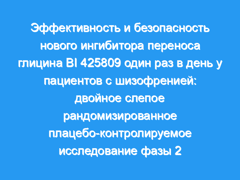 Когнитивные нарушения, связанные с шизофренией, предсказывают плохие функциональные исходы, но в настоящее время нет одобренной фармакотерапии. В этом исследовании изучалось, улучшает ли ингибитор глицинового транспортера-1 BI 425809 когнитивные способности у пациентов с шизофренией.