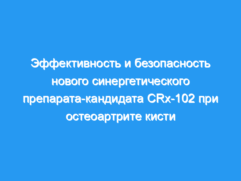 Новый синергический препарат-кандидат CRx-102 содержит дипиридамол и низкие дозы преднизолона и находится в стадии клинической разработки для лечения иммуновоспалительных заболеваний. Целью данного клинического исследования было изучение эффективности и безопасности CRx-102 у пациентов с остеоартритом кисти (HOA).