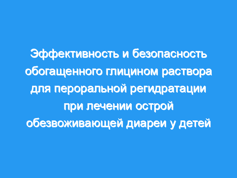 Таким образом, обогащенные глицином ОРС не имеют каких-либо дополнительных преимуществ перед стандартными ОРС. Кроме того, у двух детей развилась гипернатриемия после приема обогащенных глицином ОРС в отличие от контрольной группы.