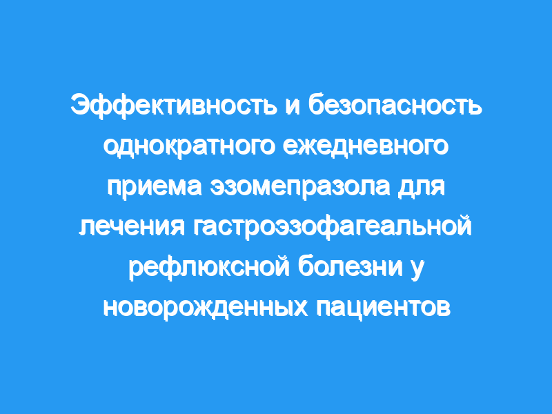 Признаки и симптомы ГЭРБ, традиционно приписываемые кислотному рефлюксу у новорожденных, не были существенно изменены при лечении эзомепразолом. Эзомепразол хорошо переносился и уменьшал воздействие кислоты на пищевод и количество случаев кислотного рефлюкса у новорожденных.