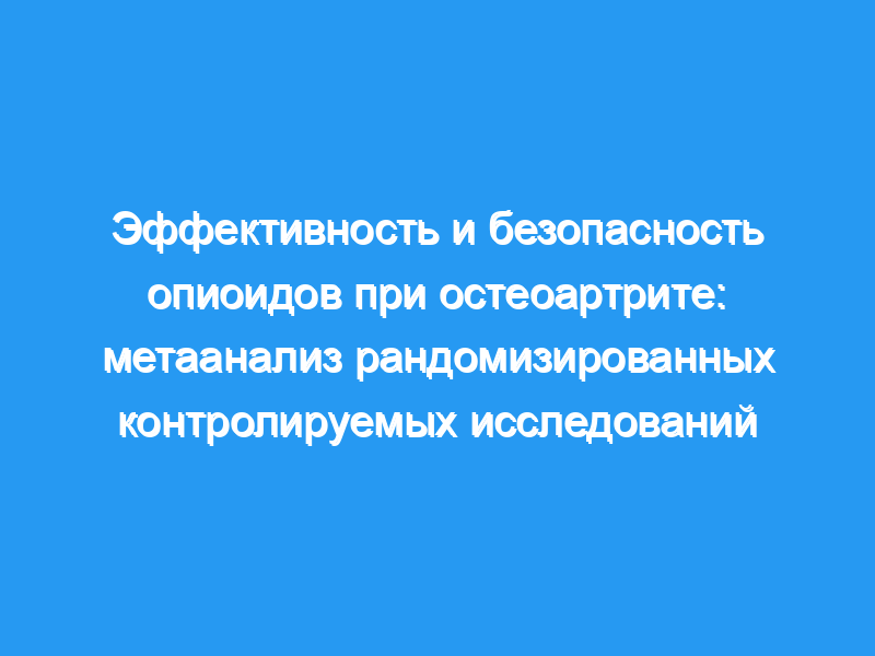 Определить обезболивающую эффективность, влияние на физическую функцию и безопасность опиоидов у пациентов с остеоартритом (ОА). Стратегия поиска: Систематический поиск литературы проводился в электронных базах данных до октября 2006 года. Также был проведен ручной поиск ссылок. Критерии отбора: Были отобраны все рандомизированные контролируемые исследования, оценивающие эффективность и/или безопасность опиоидов по сравнению с плацебо или неопиоидными анальгетиками у пациентов с ОА. Сбор и анализ данных: Данные были собраны с использованием заранее определенной формы. Статистический анализ определял в каждом исследовании величину эффекта для оценки величины эффекта лечения и количество, необходимое для причинения вреда (NNH) для оценки безопасности опиоидов.