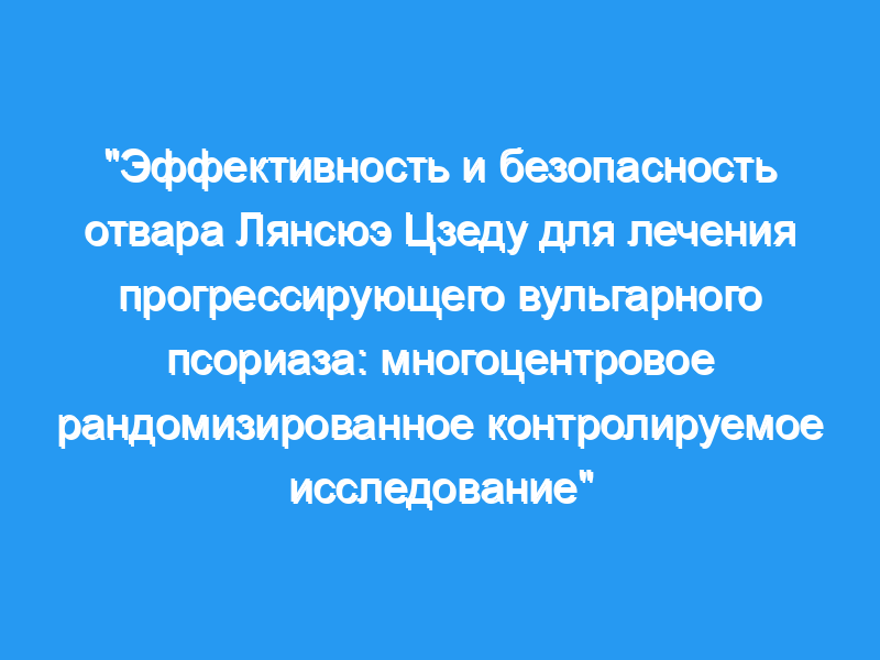 В этом многоцентровом рандомизированном контролируемом исследовании пациенты с псориазом типа «жар крови» были рандомизированы для получения либо китайской фитотерапии (LJD, группа лечения), либо западной медицины (цетиризина гидрохлорид, витамин С и комплекс витаминов группы В, контрольная группа). Баллы по площади и индексу тяжести псориаза (PASI) рассчитывались в дополнение к числу пациентов, у которых показатель PASI улучшился на ≥ 50% или ≥ 75% по сравнению с исходным уровнем. Оценивали изменение симптомов китайской медицины (цвет сыпи, ощущение жжения, зуд, выраженность раздражения и гнева), а безопасность оценивали как побочные явления и лабораторный анализ. для анализа результатов были использованы t-критерий, непараметрический тест независимой выборки и тест χ2.