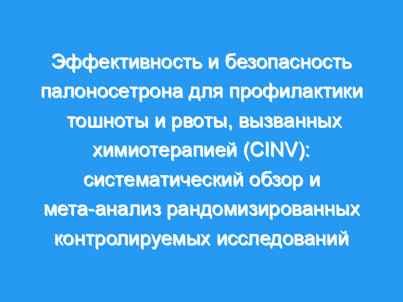 Было выявлено шестнадцать РКИ с участием 2896 пациентов, рандомизированных на палоносетрон, и 3187 пациентов, рандомизированных на другие 5-НТ(3)РАС. Палоносетрон неизменно статистически превосходил по CR, CC, отсутствию рвоты или тошноты, а иногда и по отсутствию спасательных препаратов. Анализ подгрупп показал сходство в эффективности между группами химиотерапии с высокой и умеренной эметогенностью. В острой фазе статистическое превосходство палоносетрона было обнаружено в исследованиях, в которых не использовался дексаметазон, и наоборот, РКИ, в которых дексаметазон назначался всем пациентам, были незначительными. Палоносетрон был статистически значимо безопаснее при головокружении и изменении среднего интервала QTc и аналогичен при запорах, головной боли и диарее. Клиническое превосходство палоносетрона было достигнуто в 3 из 19 проанализированных конечных точек эффективности и безопасности.