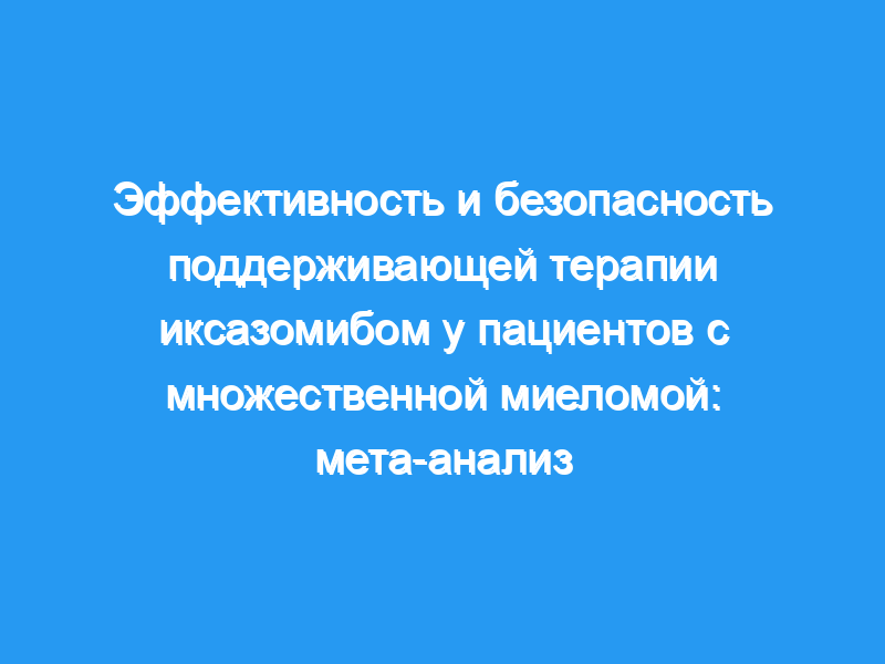 Множественная миелома (ММ) — это злокачественное заболевание плазматических клеток. Поддерживающее лечение полезно для продления времени выживания у пациентов с ММ. Иксазомиб был одобрен для лечения рецидивирующей или рефрактерной ММ в комбинации с леналидомидом и дексаметазоном. Здесь мы провели мета-анализ, чтобы определить эффективность и безопасность поддерживающей терапии иксазомибом.
