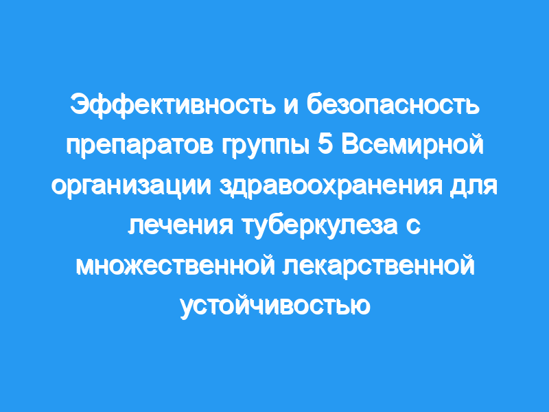 Эффективность и токсичность нескольких препаратов, используемых в настоящее время для лечения туберкулеза с множественной лекарственной устойчивостью (МЛУ-ТБ), не были полностью оценены.