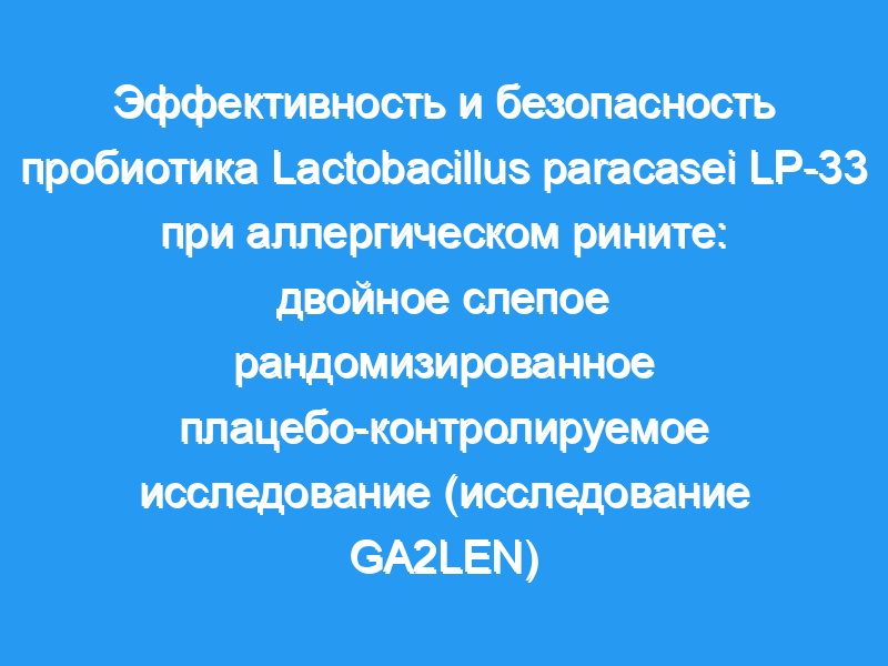 Предпосылки/цели: Дисбаланс между Th1 и Th2 клетками участвует в аллергическом рините (АР), который может быть улучшен с помощью пробиотиков. Чтобы проверить эффективность пробиотика Lactobacillus paracasei subsp. paracasei LP-33, двойное слепое, плацебо-контролируемое, рандомизированное исследование, было проведено у пациентов с аллергией на пыльцу травы, получавших лоратадин и демонстрировавших измененное качество жизни. Субъекты/методы: Пациенты с персистирующим АР, проявляющимся симптомами в течение сезона пыльцы травы, и положительным кожным тестом или специфическим иммуноглобулином Е к пыльце травы были включены врачами общей практики (ГП). Все они получали лоратадин в течение 5 недель. Первичной конечной точкой было улучшение глобального показателя качества жизни при рините (RQLQ) на пятой неделе приема LP-33 по сравнению с плацебо (в дополнение к лоратадину). Вторичные конечные точки включали носовые и глазные симптомы (индивидуальные и общие оценки симптомов), визуальную аналоговую шкалу и время первого обострения симптомов при прекращении приема лоратадина.