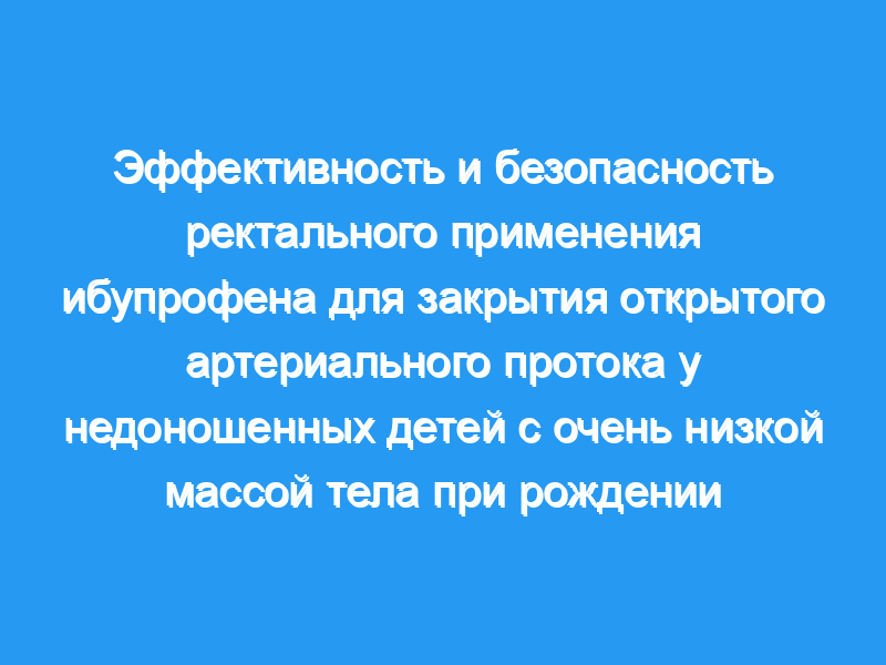 Ректальный ибупрофен так же эффективен, как и пероральный ибупрофен, для закрытия hsPDA у младенцев с VLBW. Повышение уровня cys-C при ректальном и пероральном лечении показывает, что пациенты с пограничной функцией почек должны быть обследованы и находиться под пристальным наблюдением.