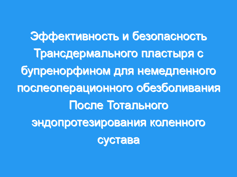 Тотальное эндопротезирование коленного сустава (ТКА) связано с умеренной или сильной послеоперационной болью. Удовлетворительная периоперационная анальгезия необходима для хорошего и предсказуемого хирургического исхода. Эффективный контроль послеоперационной боли является серьезной проблемой для лечащего хирурга и его команды. Пожилой возраст и многочисленные сопутствующие заболевания ограничивают выбор анальгетиков, которые можно предложить. Трансдермальный бупренорфин (TDB), широко используемый для лечения хронической боли, редко изучался в острых послеоперационных условиях. Целью этого исследования было сравнить безопасность и эффективность пластыря TDB с обычными анальгетиками после операции по эндопротезированию коленного сустава.