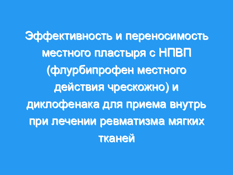 Эффективность и безопасность чрескожных пластырей местного действия с флурбипрофеном в дозе 40 мг [флурбипрофен ЛАТ] и таблеток диклофенака натрия в дозе 50 мг в день сравнивались в открытом многоцентровом рандомизированном исследовании с параллельными группами у пациентов с ревматизмом мягких тканей.