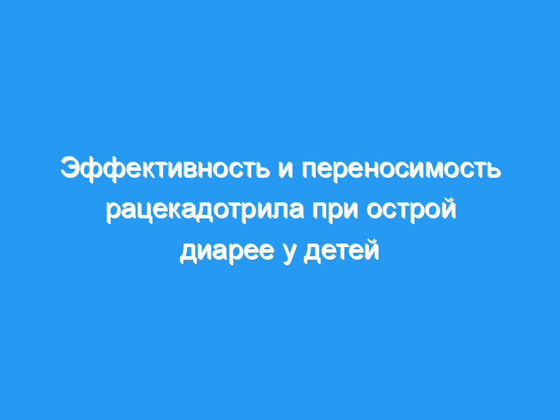 Эффективность и переносимость рацекадотрила (1,5 мг/кг, вводимого перорально 3 раза в день) в качестве дополнительной терапии к пероральной регидратации сравнивались с таковыми у плацебо у 172 младенцев в возрасте от 3 месяцев до 4 лет (средний возраст 12,8 месяцев), у которых была острая диарея. Группы лечения были сопоставимы по возрасту, продолжительности диареи, количеству стула и возбудителю микроорганизма при включении.