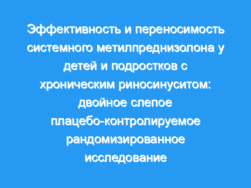 В исследование были включены сорок восемь детей (возраст 6-17 лет) с клинически и рентгенологически подтвержденным CRS. Пациенты были рандомизированы на пероральный прием амоксициллина/клавуланата (AMX/C) и метилпреднизолона или AMX/C и плацебо два раза в день в течение 30 дней. Пероральный метилпреднизолон вводили в течение первых 15 дней по сокращенному графику. Первичными параметрами были средние изменения симптомов и показатели синусовой компьютерной томографии (КТ) после лечения. Вторичными параметрами исследования были средние изменения индивидуальных показателей симптомов после лечения, частота рецидивов и переносимость. Сорок пять пациентов завершили исследование: 22 получали АМХ/С и метилпреднизолон, а 23 получали АМХ/С и плацебо. Обе группы продемонстрировали значительное улучшение показателей симптоматики и синусовой КТ при сравнении исходных значений со значениями в конце лечения (P <, .001). Метилпреднизолон в качестве вспомогательного средства был значительно более эффективен, чем плацебо, в снижении показателей КТ (Р = 0,004), общих симптомов риносинусита (Р = 0,001) и отдельных симптомов заложенности носа (Р = 0,001), постназальных выделений (Р = 0,007) и кашля (Р = 0,009). В конце лечения у 48% детей в группе плацебо все еще были аномальные результаты компьютерной томографии по сравнению с 14% в группе метилпреднизолона (Р = 0,013). Побочные эффекты, связанные с терапией, не отличались между группами. Несмотря на незначительность, частота клинических рецидивов также была меньше в группе метилпреднизолона (25%) по сравнению с таковой в группе плацебо (43%, P = .137).