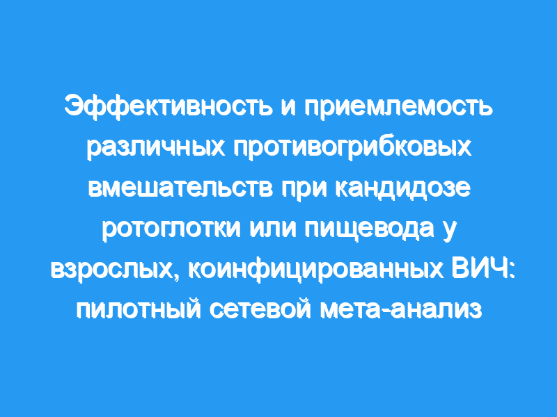 Текущий сетевой мета-анализ (NMA) включал рандомизированные контролируемые исследования (РКИ), в которых изучалась эффективность и приемлемость (т.е. частота отсева) различных противогрибковых вмешательств против кандидоза ротоглотки или пищевода у взрослых с ВИЧ. Все процедуры NMA были проведены с использованием частотной модели.