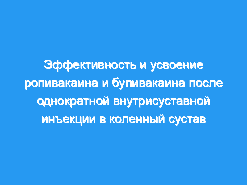 Эффективность ропивакаина в дозе 100 мг (5 мг мл(-1)), 150 мг (7,5 мг мл(-1)) и 200 мг (10 мг мл(-1)) и бупивакаина в дозе 100 мг (5 мг мл(-1)), вводимого путем внутрисуставной инъекции в колено. после окончания операции было изучено у 72 пациентов с ASA I-II, которым была назначена плановая артроскопия коленного сустава под общей анестезией в рандомизированном двойном слепом исследовании.