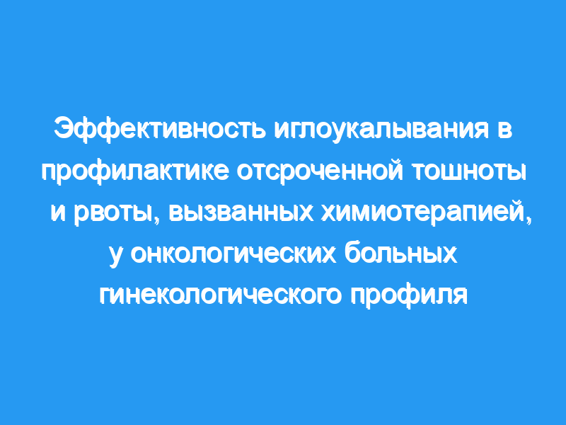 Иглоукалывание эффективно в предотвращении задержки CINV и способствует улучшению качества жизни. С меньшим количеством побочных эффектов он может быть использован в качестве альтернативного варианта лечения CINV.