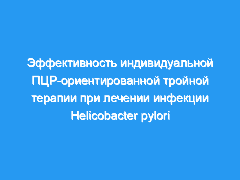 В в стране с высоким уровнем резистентности к кларитромицину индивидуальная ПЦР-направленная терапия превосходила эмпирическую тройную терапию для эрадикации H. pylori (https://www.ClinicalTrials.gov : NCT01168063).